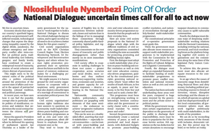 Kagiso Trust entrusted KwaZulu-Natal Christian Council (KZNCC) to partner with South Africa Democracy and Election Network (SA-DEN) and #Unmuted Civil Society in South Africa with the national responsibility of implementing the 2024 National and Provincial Election Project in 54 districts, and 257 municipalities in all 9 provinces.